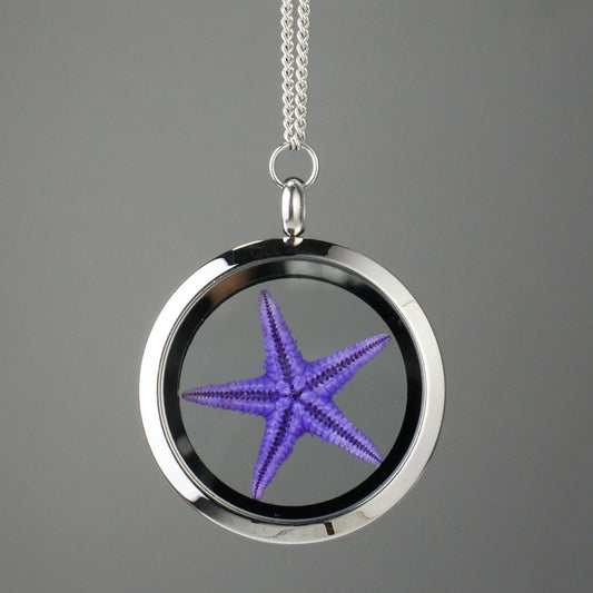 Heilendes Seestern-Amulett – Lila Seestern unter Glas