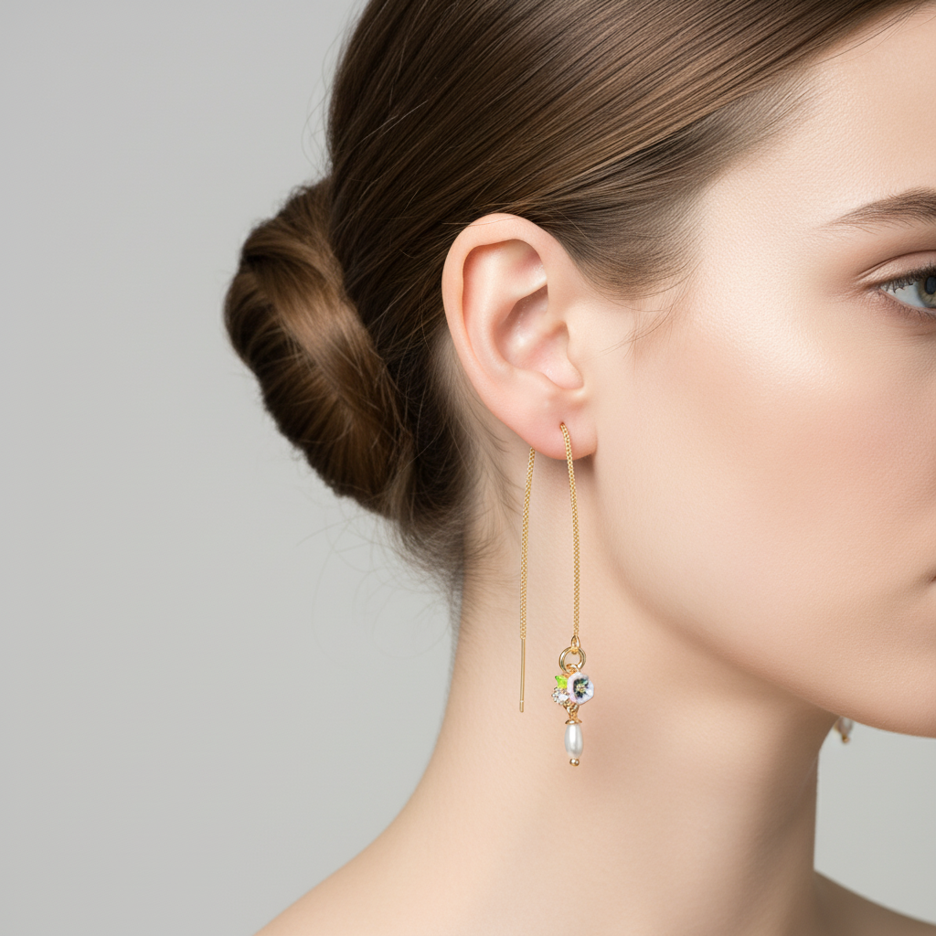 Pagaminti iš nerūdijančio plieno ir padengti auksu, auskarai yra hipoalerginiai ir lengvi. Perveriamas „threader“ dizainas suteikia auskarams šiuolaikiškos prabangos, o gėlytės tampa švelniu, bet išskirtiniu akcentu, puikiai derančiu prie minimalistinio, romantiško ar šventiško įvaizdžio.