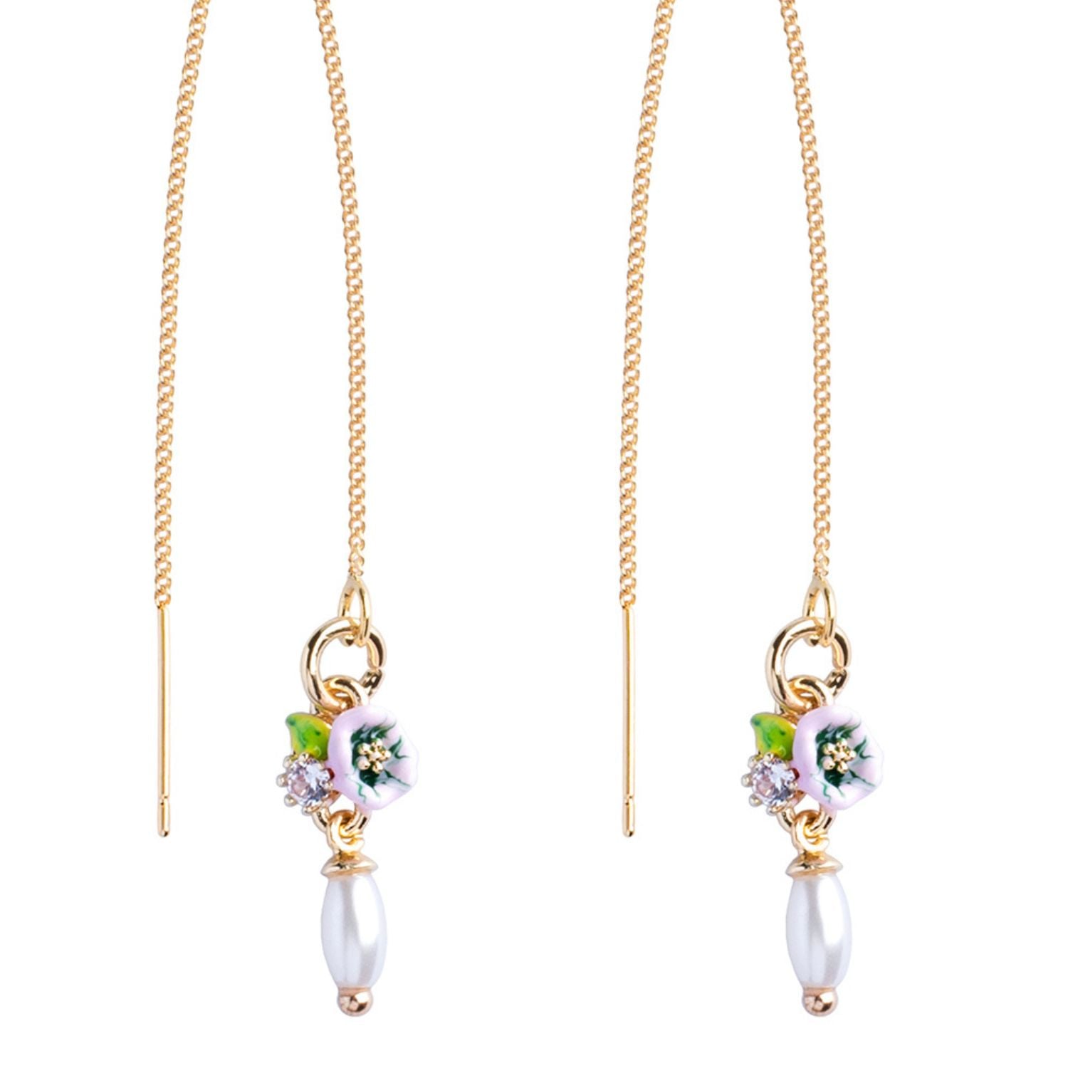 Rankų darbo paauksuoti perveriami „threader“ auskarai su rožinėmis gėlėmis – tyrumo, elegancijos ir moteriškos šviesos simbolis