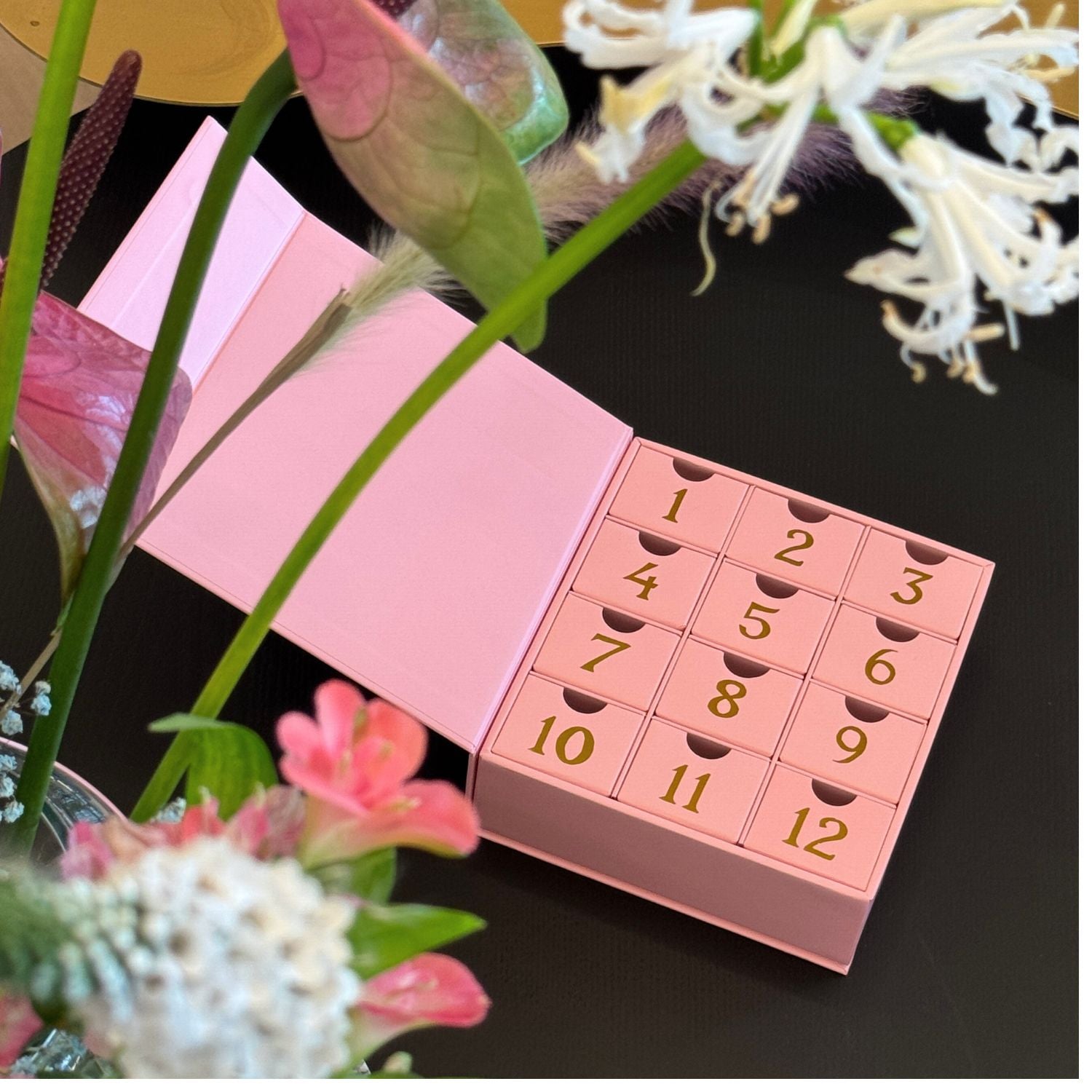 Padovanok 12 dienų kupinų laukimo, švelnumo, paslapties ir žėrinčio grožio. Kalendorius pagamintas iš standaus kartono ir aukščiausios kokybės medžiagų, puoštas subtiliomis aukso raidėmis – išskirtinės kokybės pasirinkimas tiems, kurie vertina nepriekaištingą stilių ir prabangą.