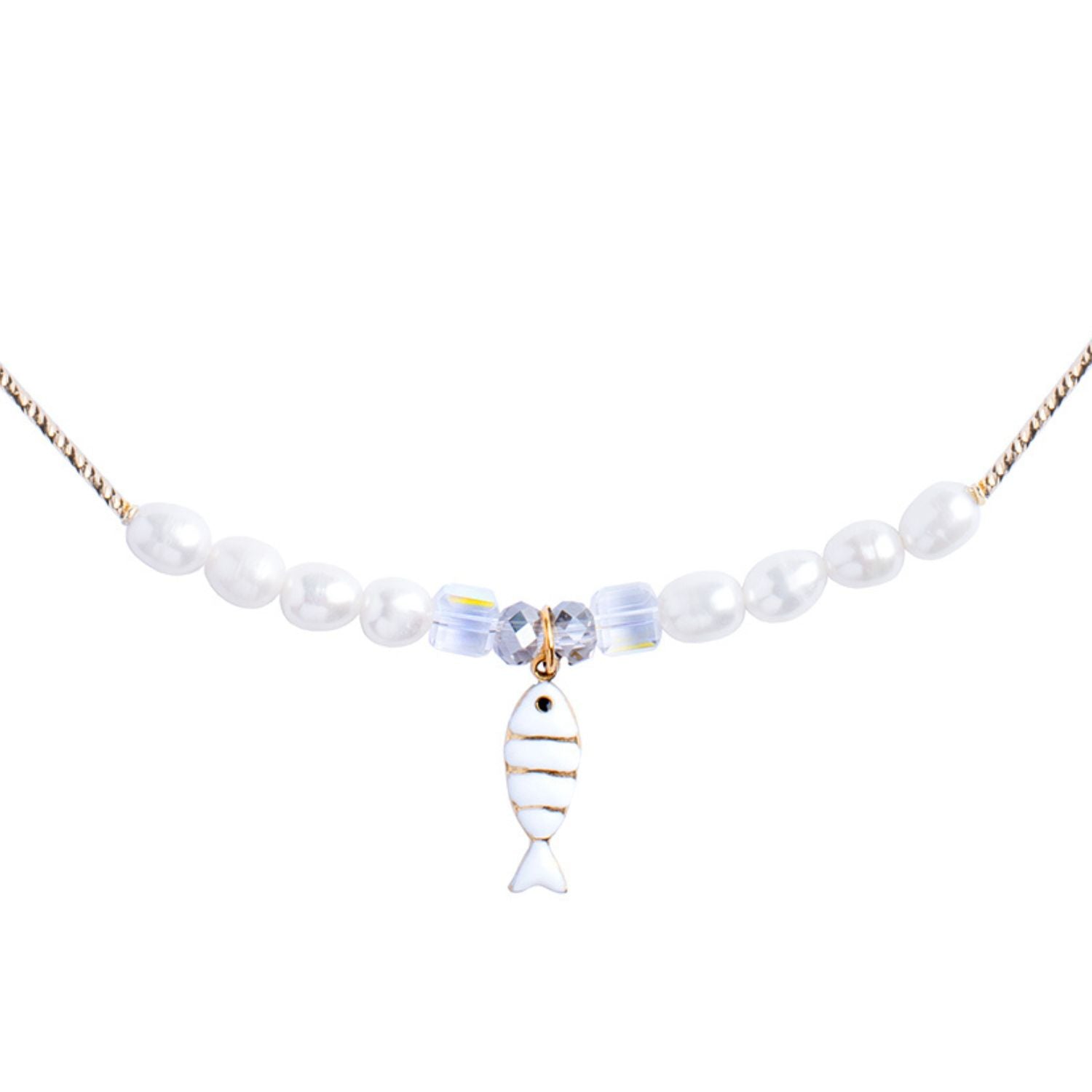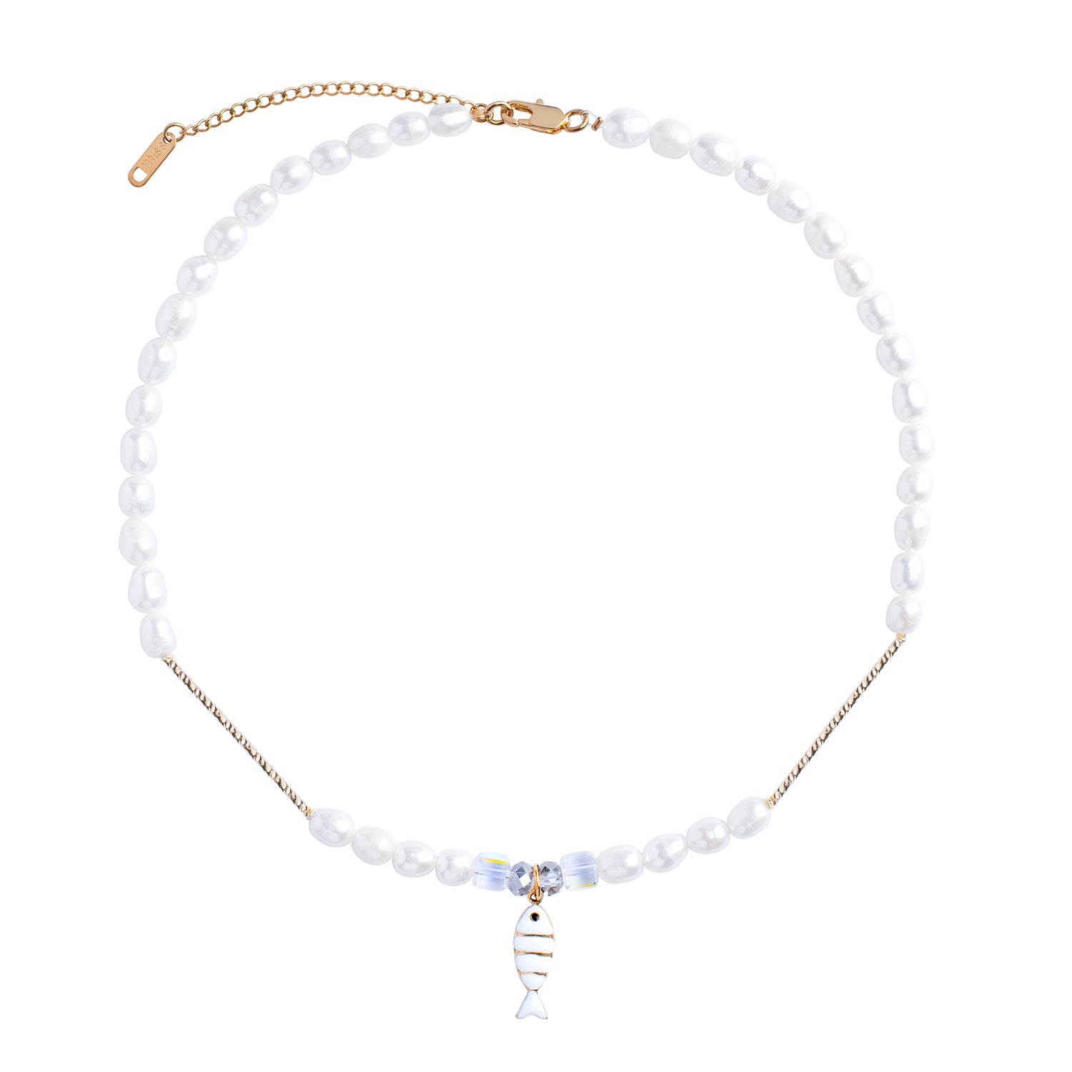 A playful twist on timeless elegance, this handmade necklace features genuine freshwater pearls paired with a charming sardine lucky fish pendant. In many cultures, the sardine is seen as a symbol of luck, abundance, and protection, making this necklace not only stylish but also meaningful. The natural luster of the pearls contrasts beautifully with the whimsical fish charm, creating a design that’s both sophisticated and unique. Perfect for adding personality to everyday outfits or as a distinctive piece for special occasions.