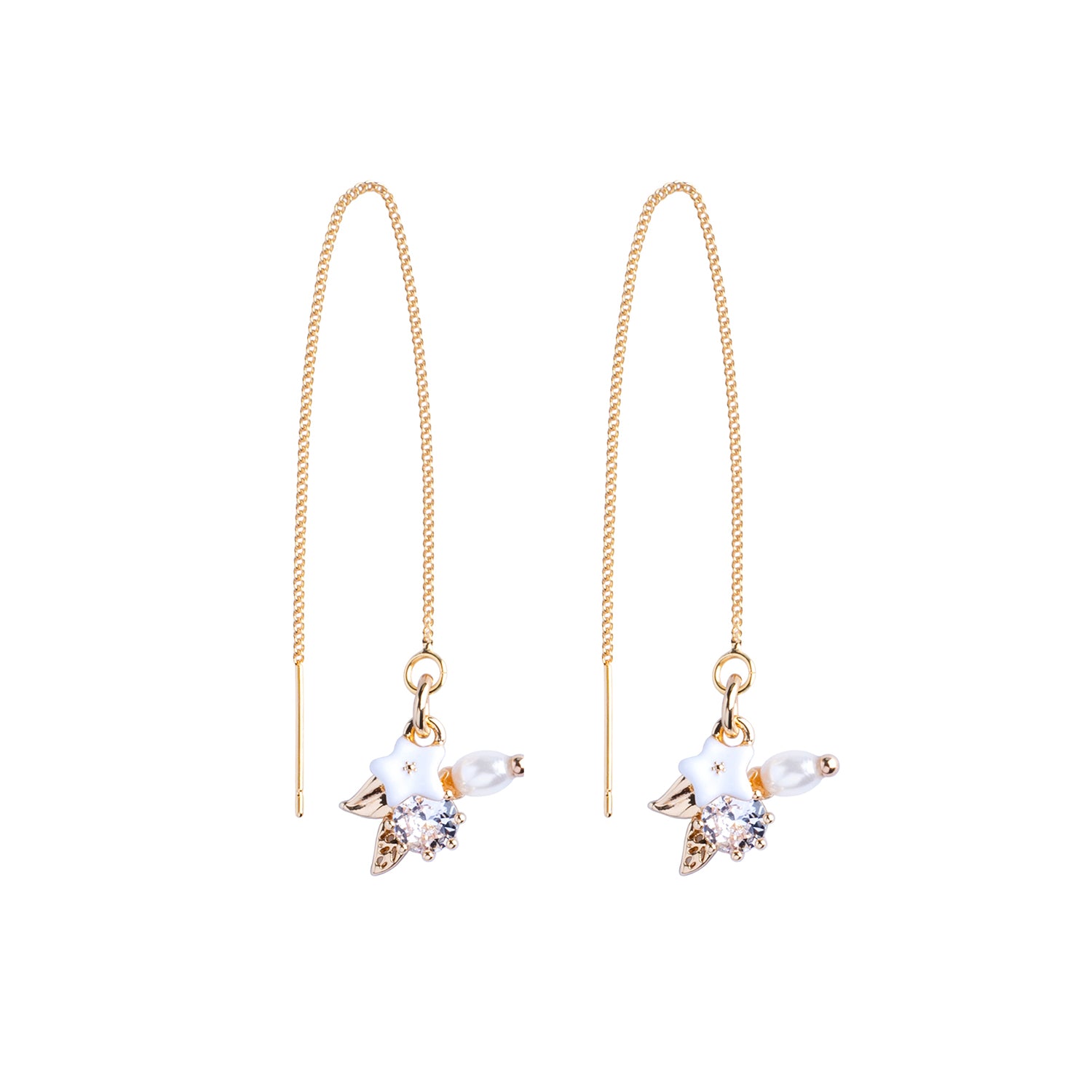 Graceful and lightweight, these handmade pull-through earrings feature a delicate white flower charm that embodies purity, elegance, and simplicity. Crafted from stainless steel with a refined gold plated finish, the design allows the earrings to move effortlessly, creating a subtle yet eye-catching look.